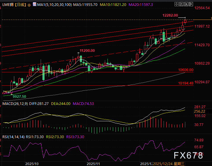 汇通财经APP讯——周三(12月24日)亚欧时段铜价强势刷新历史纪录,伦敦金属交易所铜现货报价一举站稳12000美元